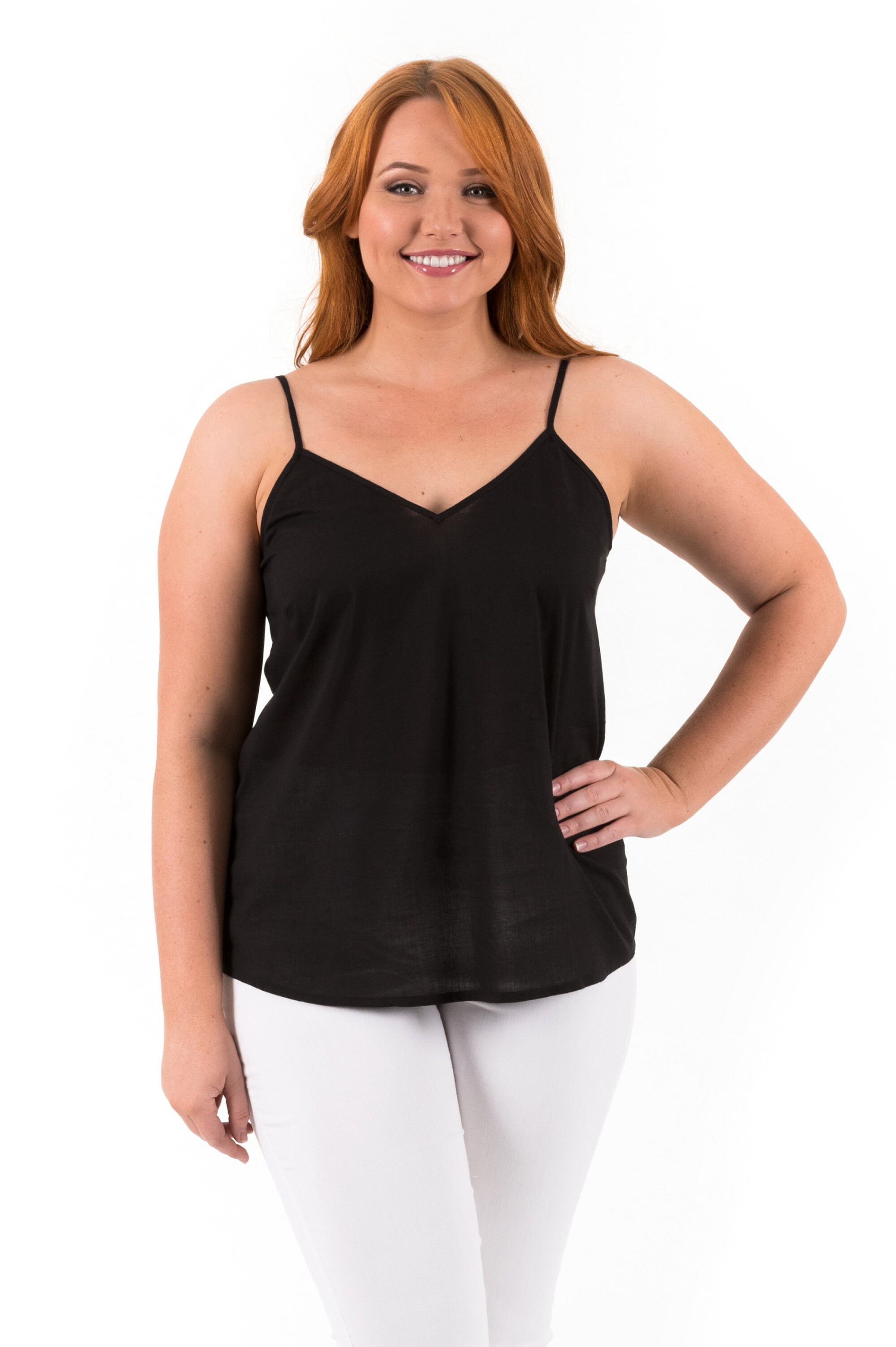Available in classic Black, crisp White, and soft Crema (a warm beige), this camisole offers effortless styling options for any wardrobe. With sizes ranging from XS to 5XL, it’s designed to flatter and fit a wide variety of body shapes.